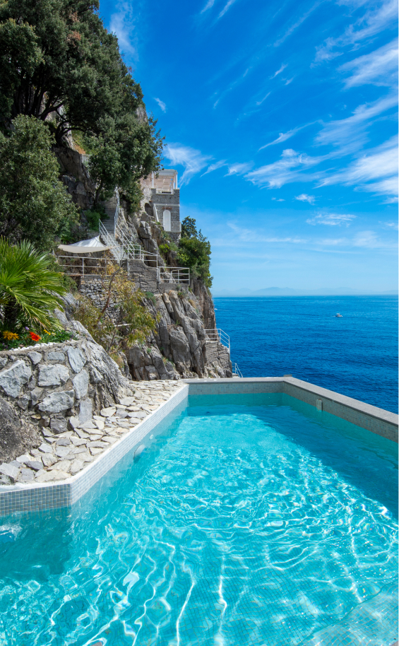 Villa Le Baste è un gioiello incastonato nella roccia, sospeso tra cielo e mare, nel tratto più autentico e spettacolare della Costa d’Amalfi.